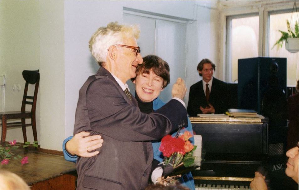 13.1.98. In teachers' "kurilka" - V.L.Il'in, L.A.Dubejkovskaya
